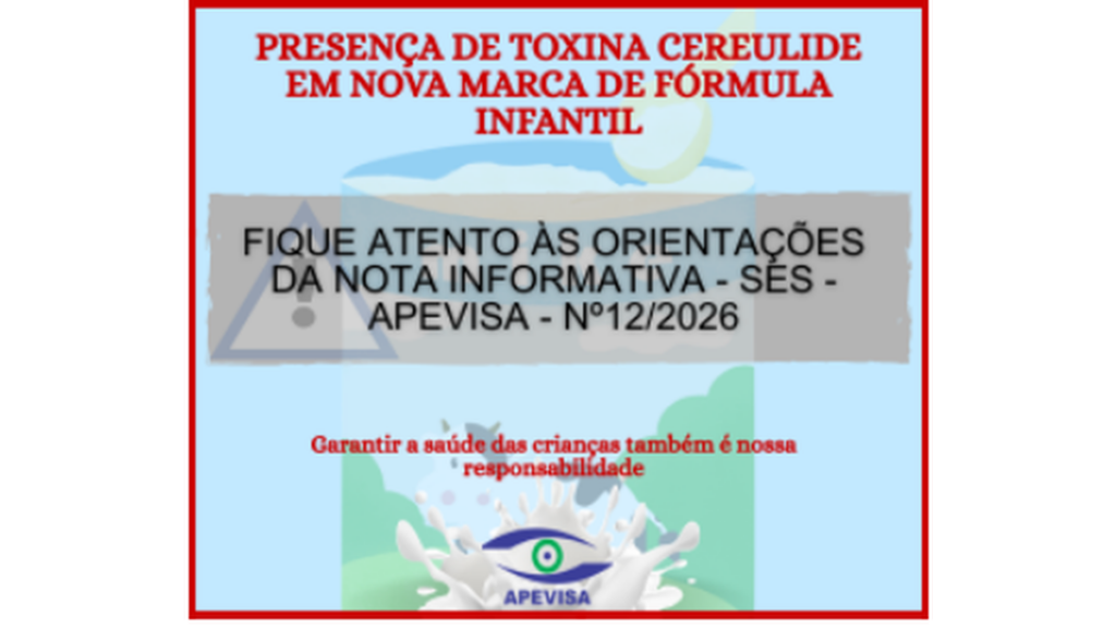 Alerta Sanitário: Fórmula Infantil com Risco de Contaminação A Agência Pernambucana de Vigilância Sanitária (APEVISA) publica NOTA INFORMATIVA – SES – Diretoria Geral da Agência Pernambucana de Vigilância Sanitária e saúde do Trabalhador – Nº...